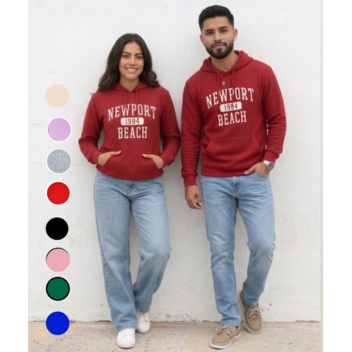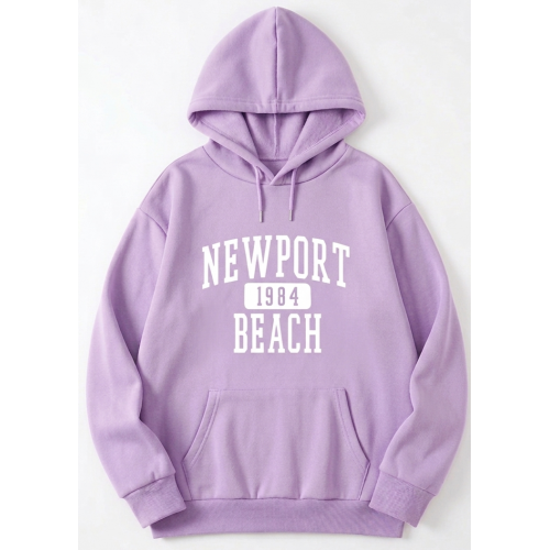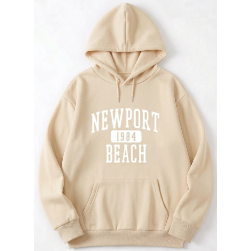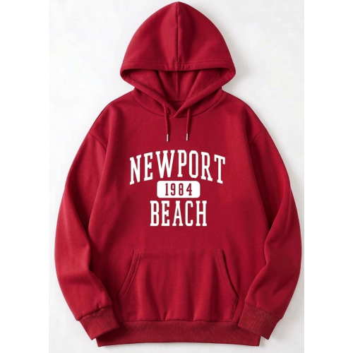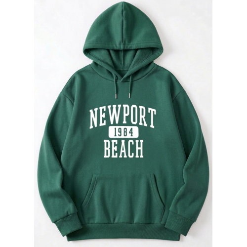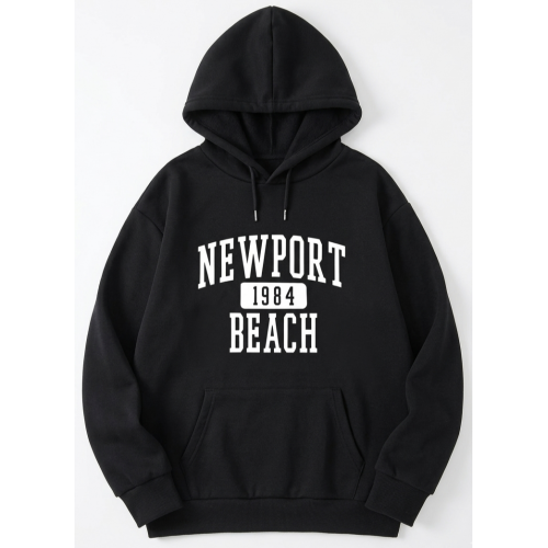Diseño: Estampado frontal con el texto "NEWPORT 1984 BEACH" en tipografía estilo deportivo o universitario.