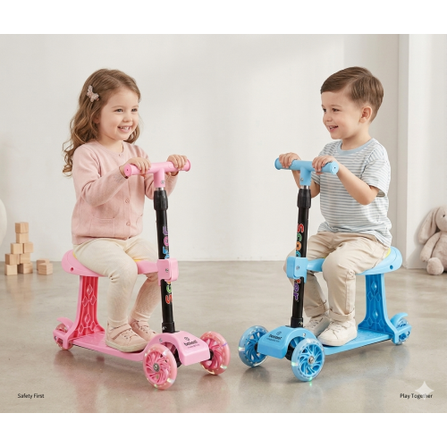 FUNCIONALIDAD 2 EN 1: Se puede usar como correpasillos con asiento o como un entretenido scooter, adaptándose a las diferentes etapas de crecimiento del niño.